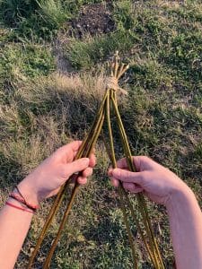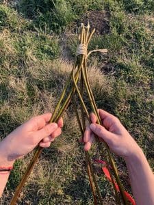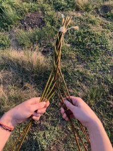 - Necháme děti najít v přírodě vrbu a vybrat proutky, které jsou zhruba stejně tlusté i dlouhé.